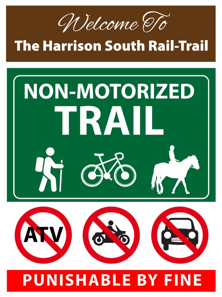 Description of “non-motorized trails” — Harrison Recreational Trails defines non-motorized trails as including, but not limited to, rail-trails, water trails, mountain bike trails, primitive trails, running trails, equestrian trails, and accessible trails.